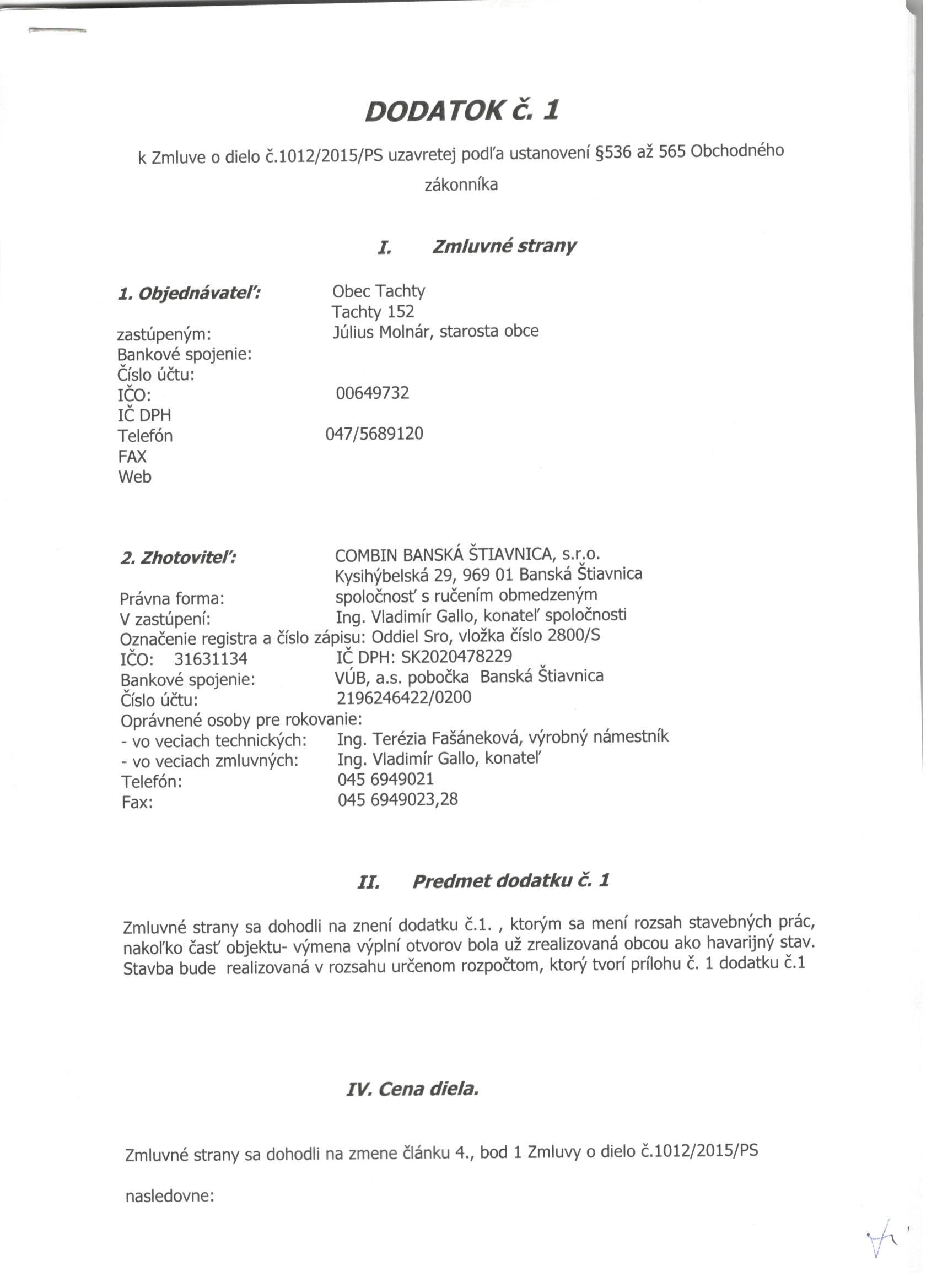 - Dodatok č. 1 k Zmluve o dielo č. 1012/2015/PS