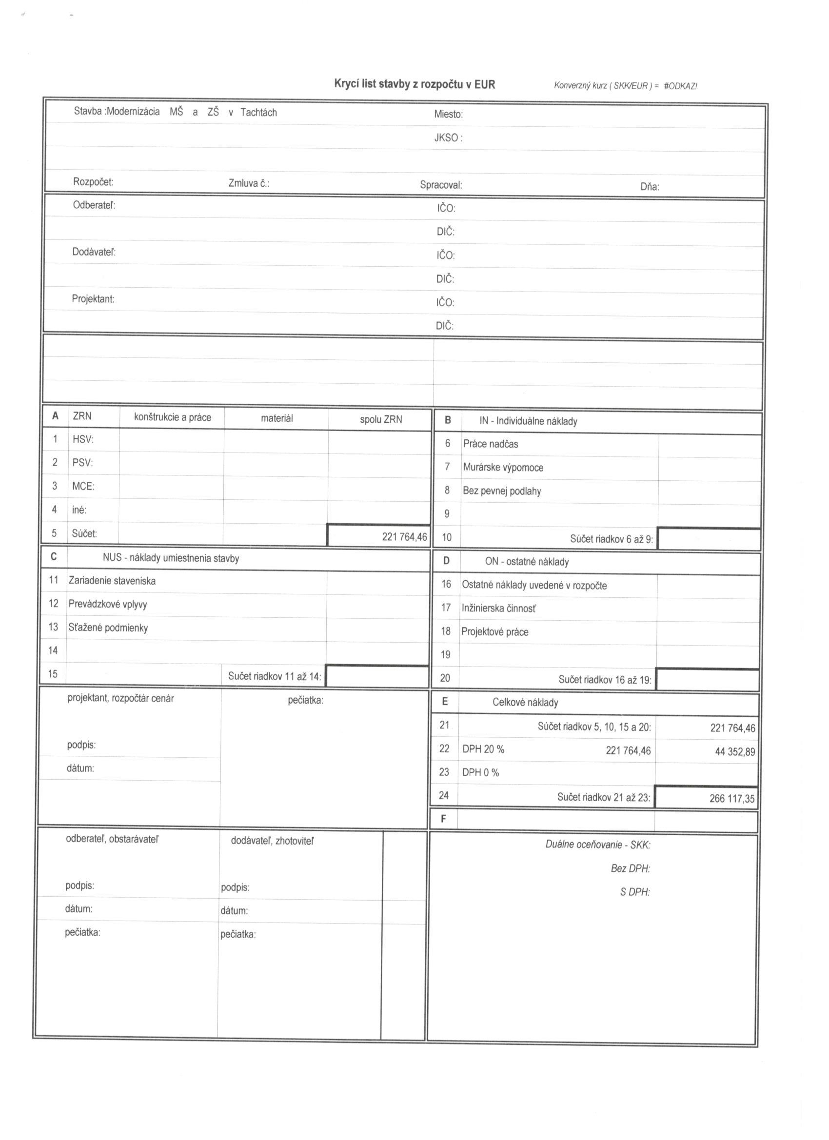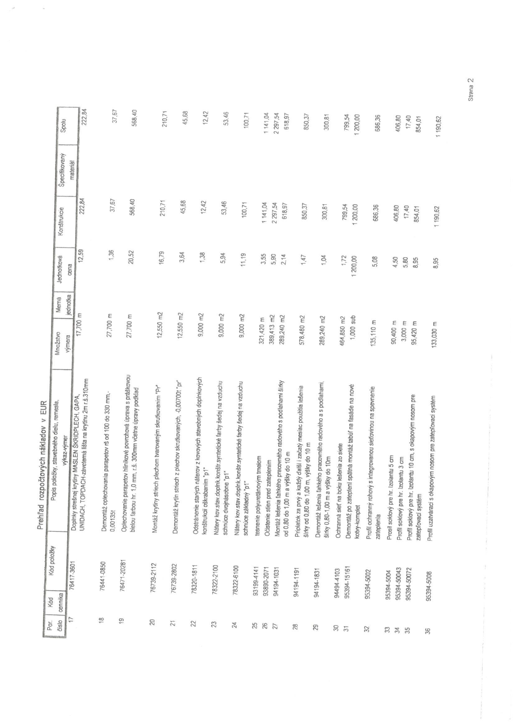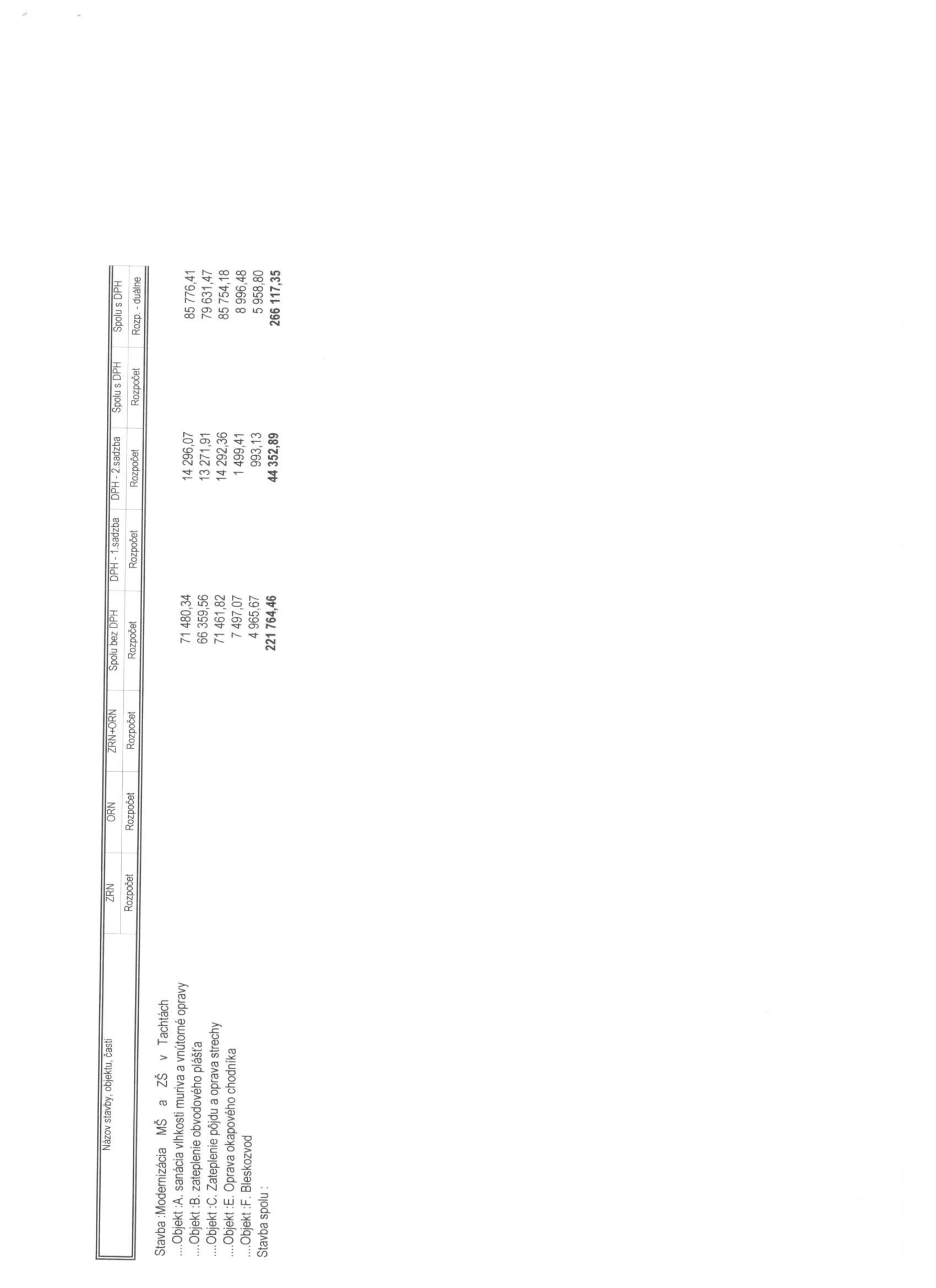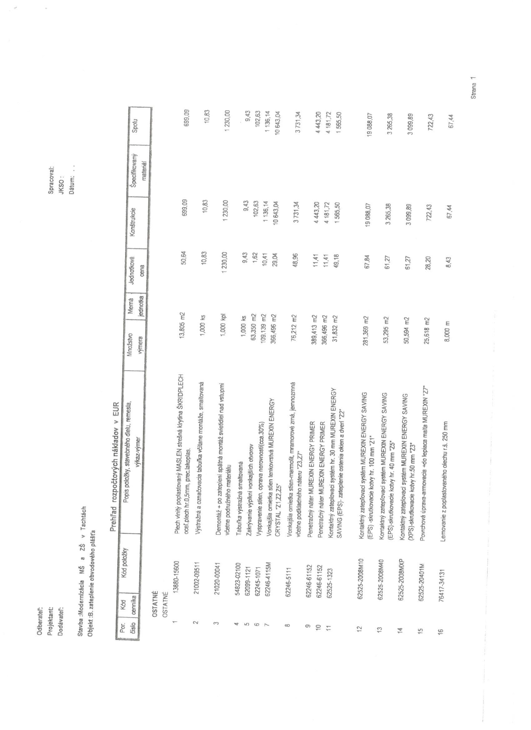 - Zmluvné strany sa dohodli na znení dodatku č. 1., ktorým sa mení rozsah stavebných prác, nakoľko časť objektu-výmena výplní otvorov bola už zrealizovaná obcou ako havarijný stav. Stavba bude realizovaná v rozsahu určenom rozpočtom, ktorý tvorí prílohu č. 1 dodatku č.1