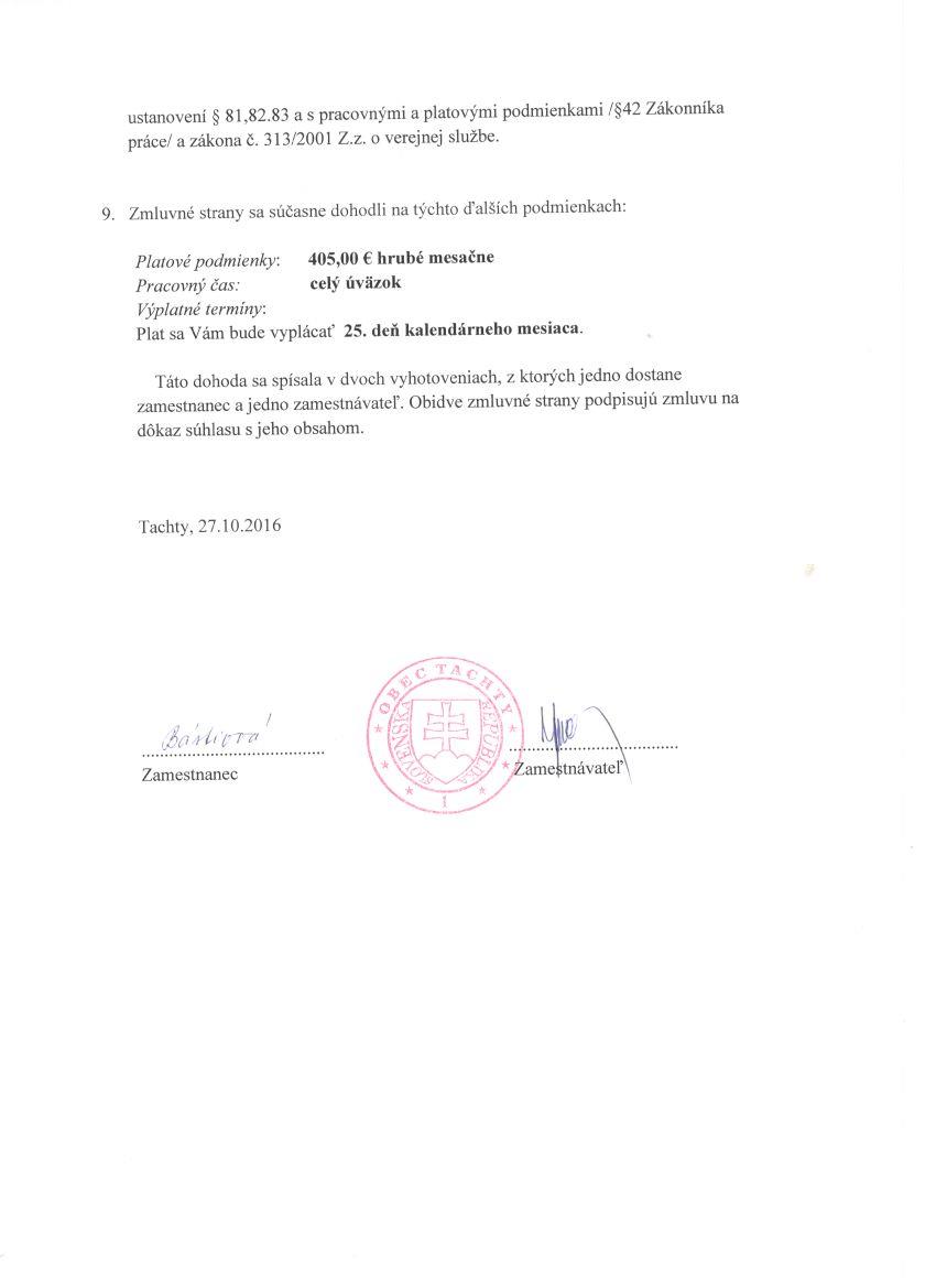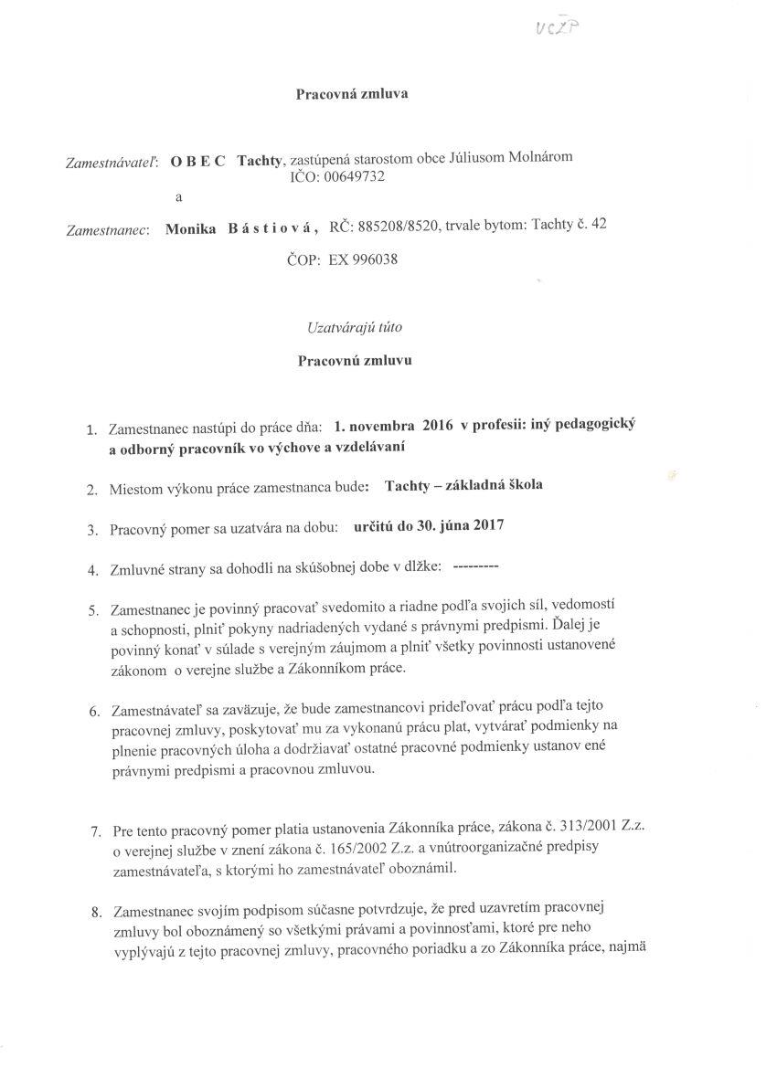 Detail zmluvy Pracovná zmluva